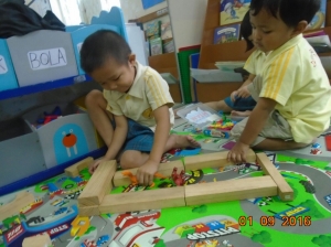 Dalam tema "Air", siswa PG dan TK melakukan aktivitas mencuci alat peraga dan mainan di kelas. Dalam aktivitas ini, anak memperhatikan proses perubahan bentuk air, dari cair menjadi gas, sekaligus melihat proses pelarutan sabun menjadi busa.